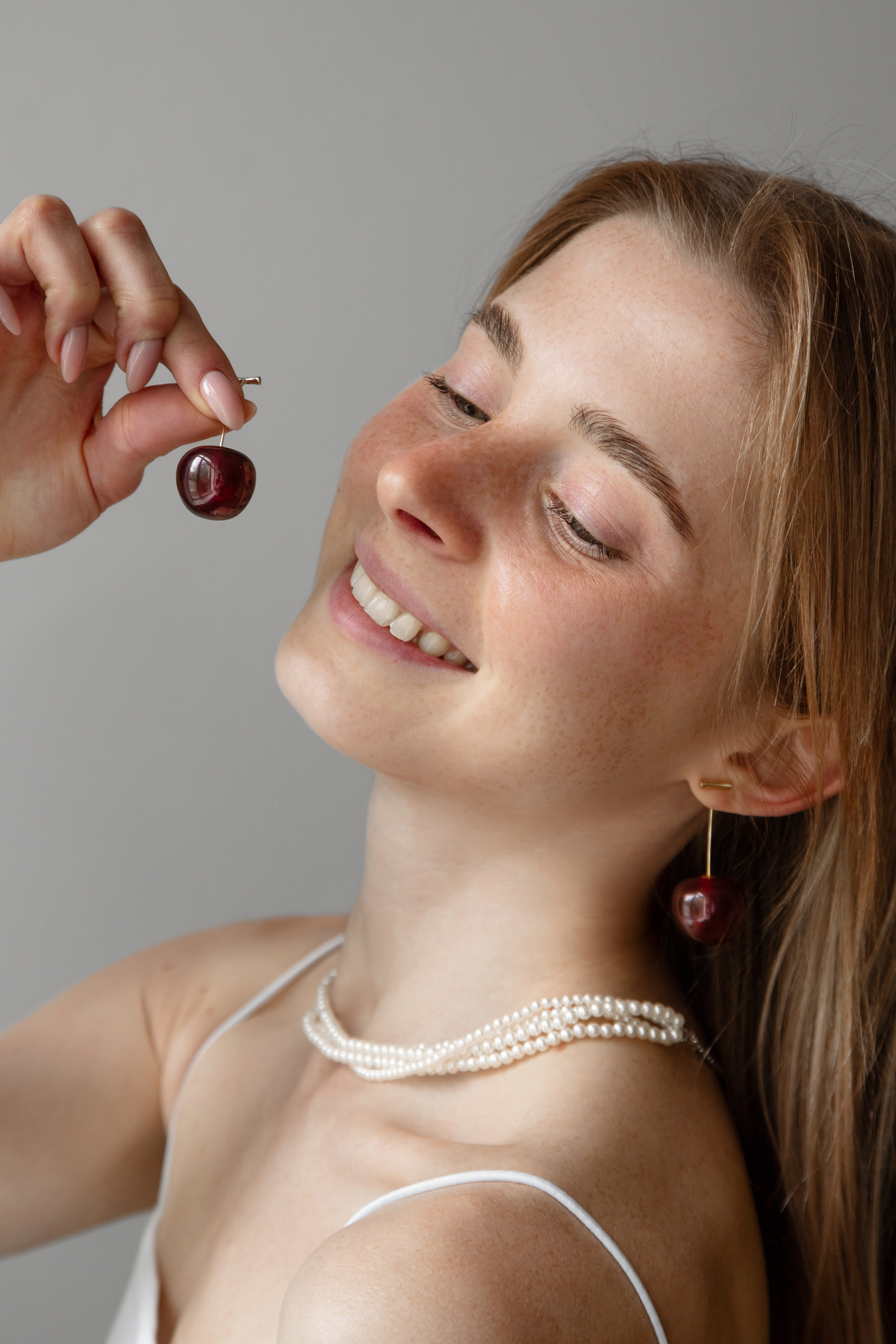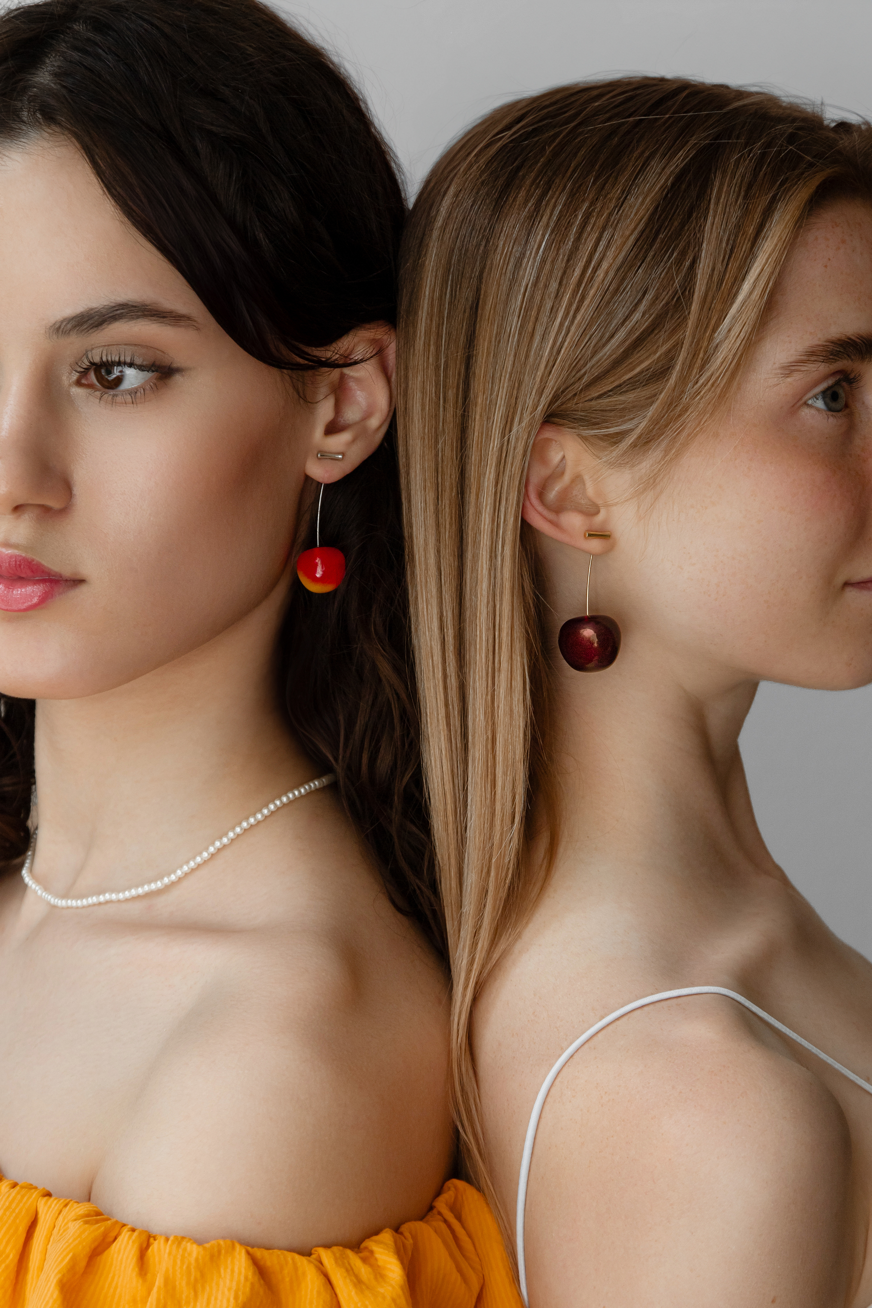 Крупные вишенки с лёгким глянцем будто только что с ветки - добавят вашему образу свежести и настроения. Длинная изящная швенза делает серьги заметными, но не тяжёлыми, а серебристый оттенок фурнитуры подчёркивает сочность ягод.