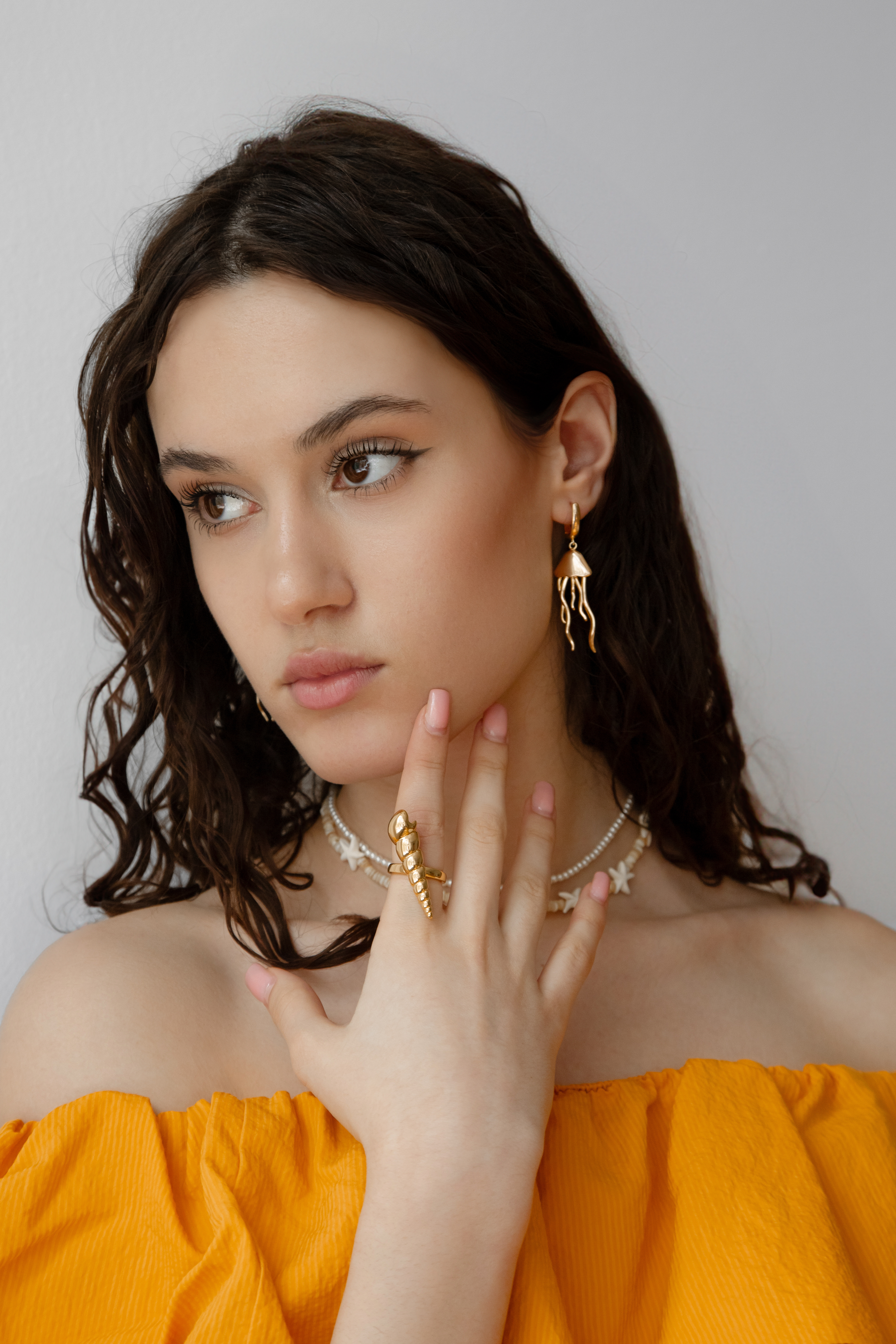 Ловим лето за хвост — и превращаем морскую находку в стильный акцент. Кольцо MERMAID’S SECRET будто только что найдено на берегу: гладкая, серебристая ракушка с идеальной спиралью. Минималистичный дизайн, который не нуждается в лишних словах — просто добавь к своему образу немного морской свободы и свежести. Носи соло или в паре с другими украшениями SHKATULKA, чтобы каждый день был как отпуск у моря.